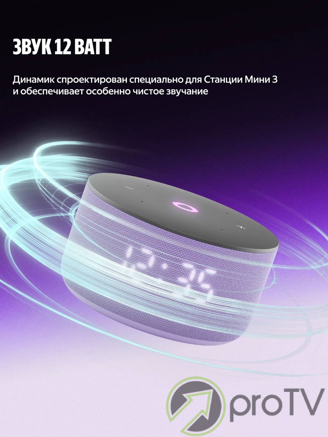 Благодаря более мягкой, цельной и гармоничной форме корпуса Станция Мини 3 отлично смотрится в любом современном интерьере. Цветовая палитра умной колонки тоже обновилась: можно выбрать классические чёрный и серый, а для ценителей акцентов подойдёт пастельный фиолетовый оттенок.