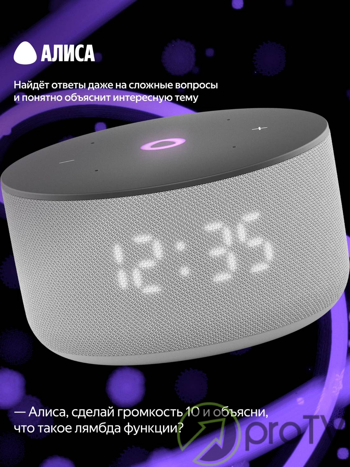 Ваша персональная умная колонка с Алисой, с которой можно продуктивно работать, легко вести домашние дела и классно отдыхать Обладает встроенным LED-дисплеем отображающим часы и эмоции. Идеальна для музыки, голосовых запросов и управления умным домом. Внутри живёт эмоциональная и функциональная Алиса, с которой никогда не бывает скучно: с ней можно веселиться, делиться секретами, играть и общаться дни напролёт, она найдет ответы на миллионы вопросов, придумает идеи, предложит классные игры, включит любимую музыку. Станция Мини 3 звучит громко и сочно благодаря расширенному акустическому объёму и новому динамику увеличенного диаметра. Обратите внимание: Алиса понимает и общается только на русском языке!