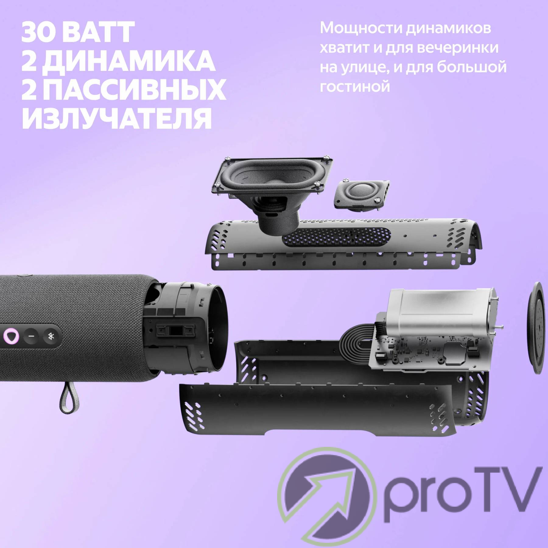 Первая портативная умная колонка с Алисой от Яндекс. Внутри живёт точно такая же Алиса как и в традиционных "комнатных" Яндекс Станциях, и умеет ровно всё тоже самое. Однако благодаря типично JBL-овскому форм-фактору и встроенному аккумулятору эту колонку действительно удобно носить с собой и пользоваться на природе, на пляже, на даче, в автомобиле и т.п. Берите с собой Алису, куда бы вы ни отправились и управляйте любимой музыкой голосом по Wi-Fi и Bluetooth. Любой современный смартфон умеет раздавать мобильный интернет по Wi-Fi, так что при подключении к такой точке доступа Алисы Стрит, у вас всегда "под рукой" будет весь функционал нейронки YandexGPT. Впрочем даже без интернета (слушая музыку по Bluetooth с телефона) вы сможете управлять работой колонки голосом ("играй", "дальше", "громче", "пауза" и т .п.). Обратите внимание: Алиса понимает и общается только на русском языке!
