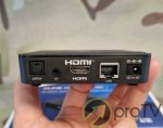 Установка жёсткого диска внутрь корпуса Dune HD AV1 4K Plus непредусмотрена. Подключать внешние накопители (диски и флешки), предлагается через порты USB 2.0. Скорости этого интерфейса предостаточно для работы с BluRay и Ultra HD файлами любого размера. Кроме того, традиционно поддерживается работа с сетевыми дисками, будь то NAS-накопители или просто компьютеры с расшаренными директориями в которых хранятся фильмы и музыка. Кстати теперь и в младшей моделе появилась функция, которая до этого была только в старших дорогих плеерах Dune HD - аппарат может выступать не только Samba-клиентом, но и сервером. То есть любые подключенные через USB к Dune HD AV1 4K Plus накопители становятся "видны" в локальной сети, так что к ним вы сможете обращаться с любых других устройств.
