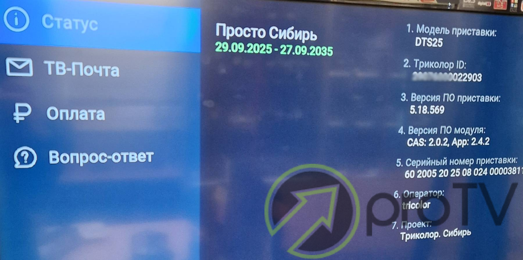 В приёмнике DTS25 в отличие от предыдущих моделей - нет смарткарты, она теперь встроена на плату. В качестве основного пакета на этой модели подключен пакет Просто ТВ сроком на 10 лет. При большом желании можно подключить и другие пакеты DRE-Crypt: Единый Ultra, Детский, Ночной и т.д., однако имейте ввиду 10-летняя подписка на Просто ТВ сразу же СГОРИТ!