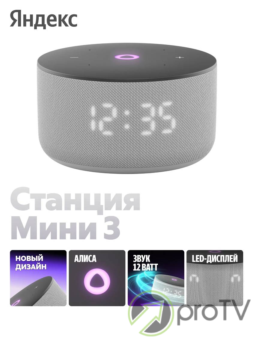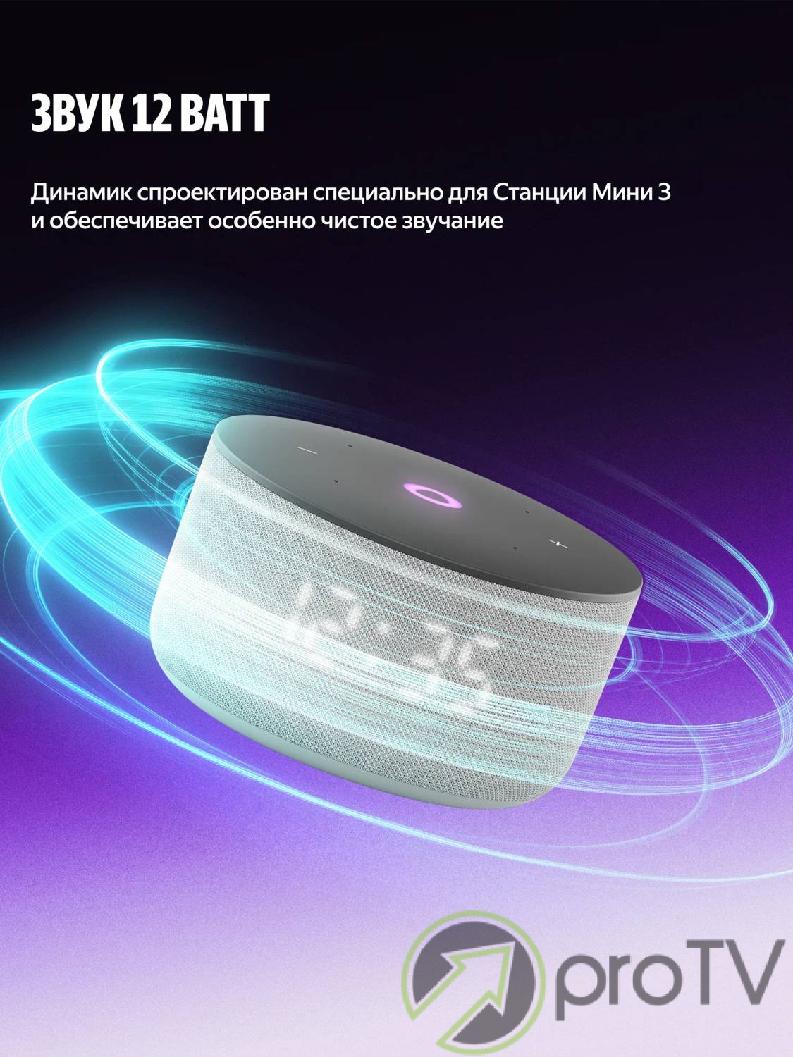 Ваша персональная умная колонка с Алисой, с которой можно продуктивно работать, легко вести домашние дела и классно отдыхать Обладает встроенным LED-дисплеем отображающим часы и эмоции. Идеальна для музыки, голосовых запросов и управления умным домом. Внутри живёт эмоциональная и функциональная Алиса, с которой никогда не бывает скучно: с ней можно веселиться, делиться секретами, играть и общаться дни напролёт, она найдет ответы на миллионы вопросов, придумает идеи, предложит классные игры, включит любимую музыку. Станция Мини 3 звучит громко и сочно благодаря расширенному акустическому объёму и новому динамику увеличенного диаметра. Обратите внимание: Алиса понимает и общается только на русском языке!